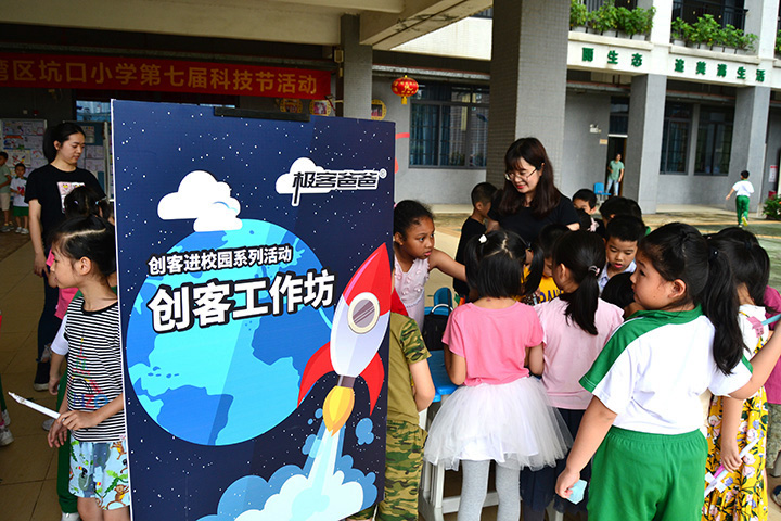 为什么那里都是众众众众?因为又到了一年皮一度的儿童节了呀!火热朝天!说的不单只是天气,还有广州市荔湾区坑口小学的气氛!这一天,学校携手梦车间一起开展科技活动节,提前为孩子们庆六一。